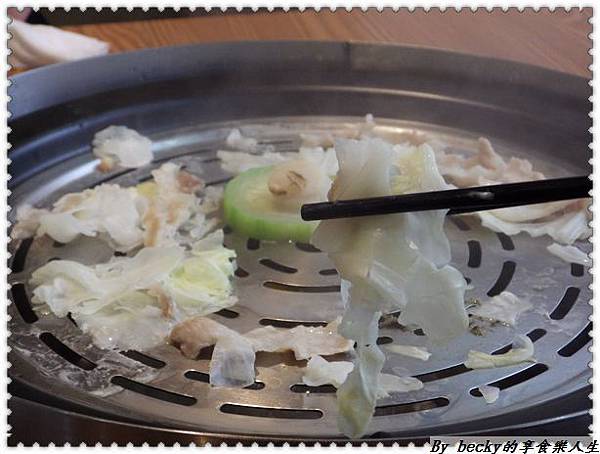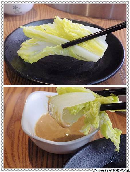 夾一塊松阪豬入口咀嚼有著微嫰口感,還帶點肉汁,薄薄的肉片吃起來有些微的嚼勁;而沾著胡麻醬吃,有著芝麻香氣,這樣子的組合也很好吃。