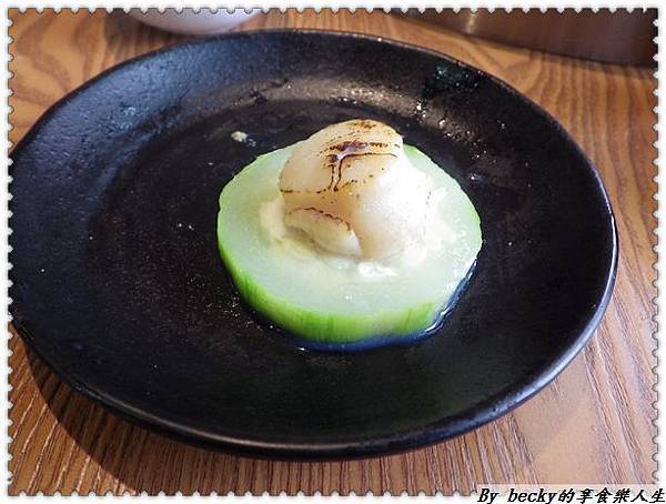 干貝絲瓜則是用澎湖的絲瓜,入口有著軟嫰及多汁的甜味,而干貝則是鮮甜,有著一絲絲的口感,咀嚼非常有彈性。