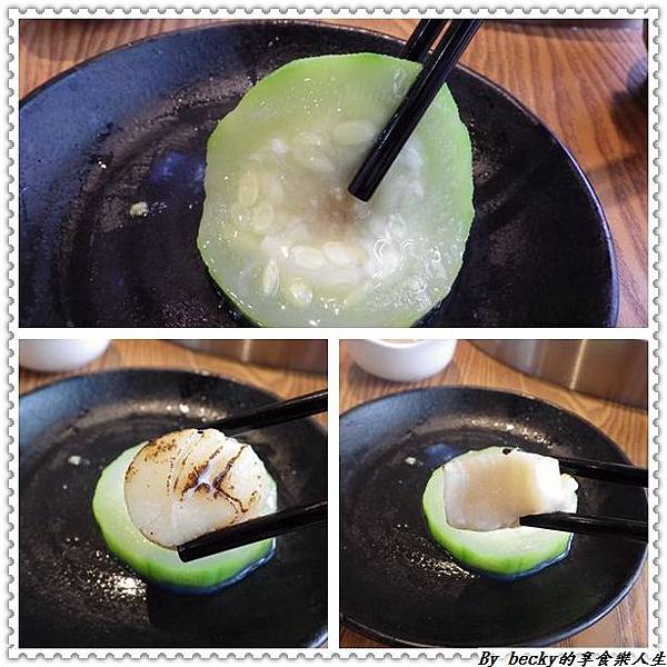 再來上桌的是干貝絲瓜及松阪豬這二種同時一起放進鍋中。