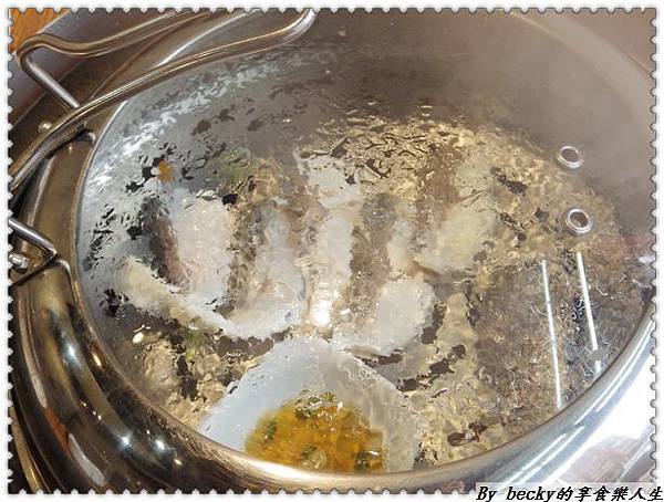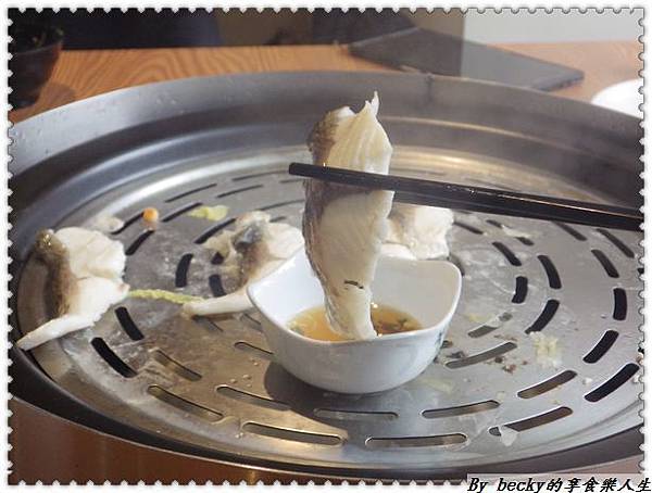 約5分鐘後,魚片已經熟食了,吃原味是沒有任何味道,魚肉肉質鮮嫰,沾著醬吃,帶點微酸甜口感,這個魚片要沾醬吃才夠味。