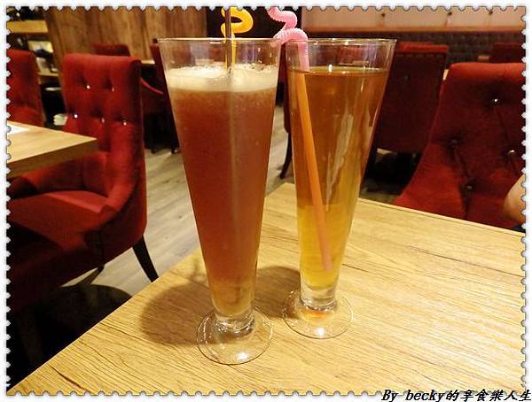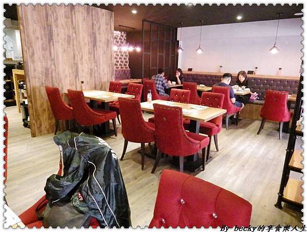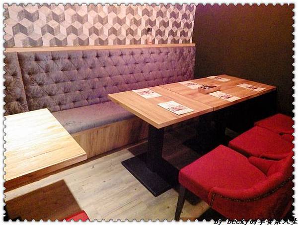 進到店內裡頭的裝潢帶點高雅及略美式風格,紅色坐椅入坐也非常舒服,整個氣氛很不錯,位子其實並沒有很多,建議還是要先訂位喔!
