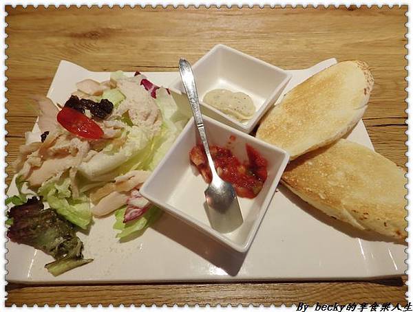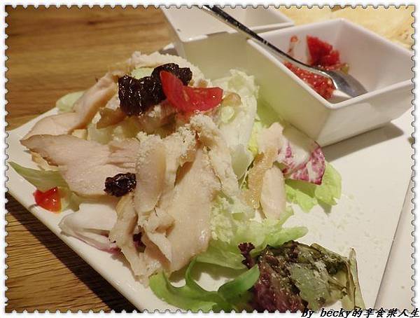 這個佐醬是凱薩醬與莎莎醬,燻雞肉旳份量非常多,入口咀嚼非常鮮嫰,而生菜新鮮,帶有水份,因上面有灑起司粉,吃起來鹹鹹又美味,整個就很好吃。