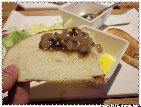 而蕈菇醬則是拿來沾麵包的吃起來微鹹又有咀嚼口感,也很好吃呢!