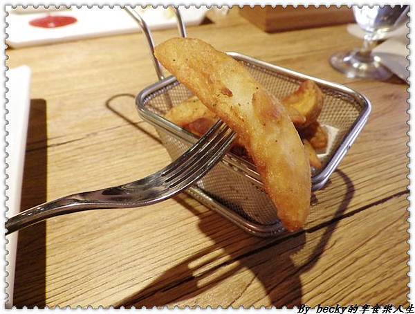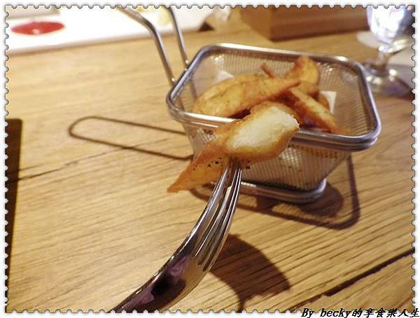 這是帶皮的馬鈴薯去炸的,每一塊都很大塊也很紮實,外皮炸的酥脆裡頭綿密,即使冷掉也不會油膩,綿密好入口。