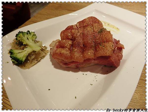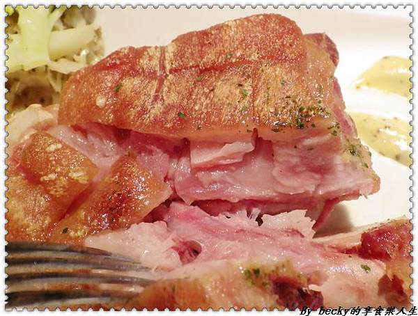 因為已經去骨,所以切著非常順,切一小塊入口,外皮非常脆,入口咀嚼還有咔滋咔滋作響的聲音,有著豐盛的膠原蛋白,非常Q彈,而豬肉則是很鮮嫰,看似油脂很多,但卻不會很膩口,肥廋肉與皮一起入口,有著多重層次口感及享受。