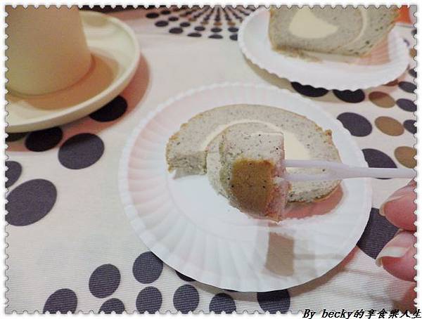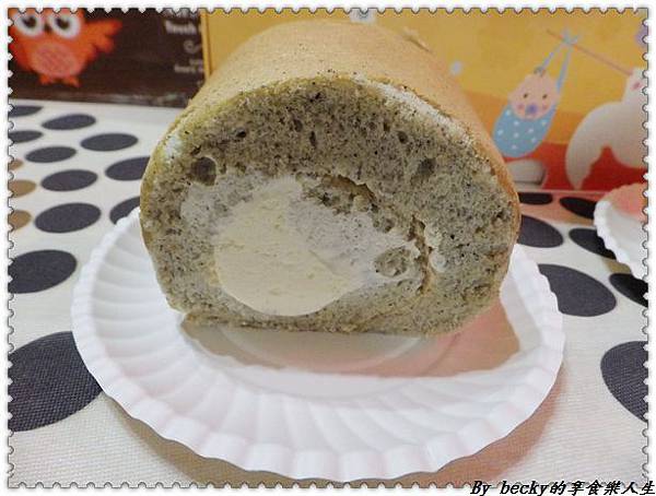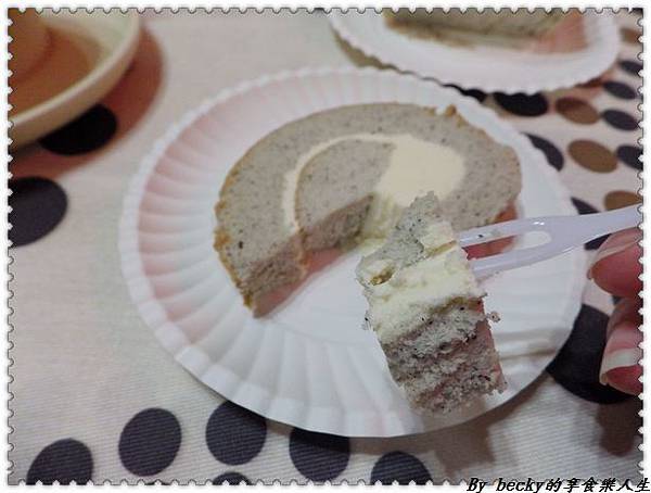 吃一口,嘴中有著黑芝麻的微香,與鮮奶油一起有著豆香及芝麻香,整個在嘴中化開,冰冰涼綿密又鬆軟的口感,再加上不甜膩,老媽很愛這個芝麻燕麥豆漿捲。