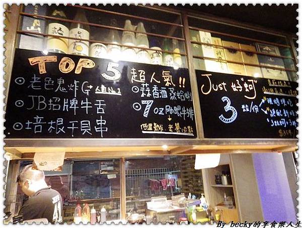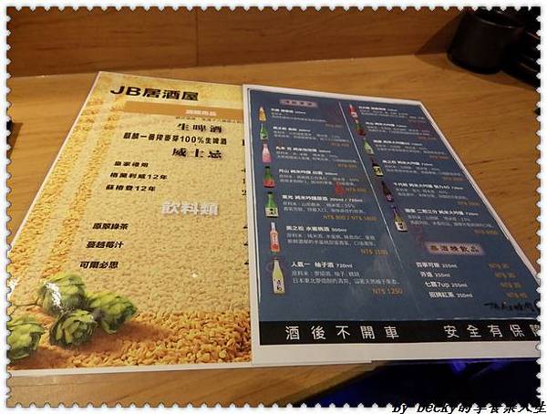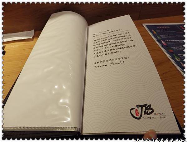 這是菜單第一頁是說明JB的由來:「JB極品居酒屋」的JB取自於老闆Jeff的名字,Jeff’s Bar也是「呷飽」的台語諧音。