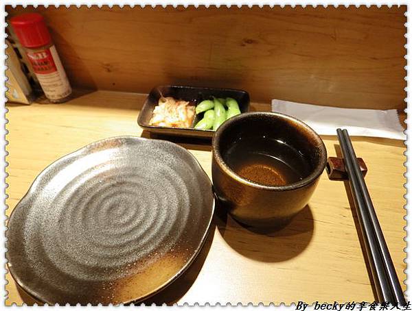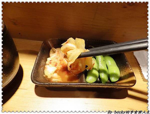 等待同時也品嚐了小菜毛豆及泡菜;毛豆入口微鹹有嚼勁,泡菜微酸辣,很適合當開胃小菜。