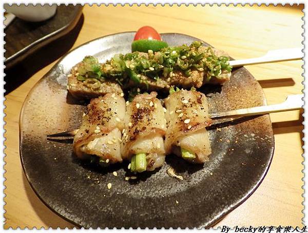 蕃茄牛肉串、培根干貝串、胗心雞串