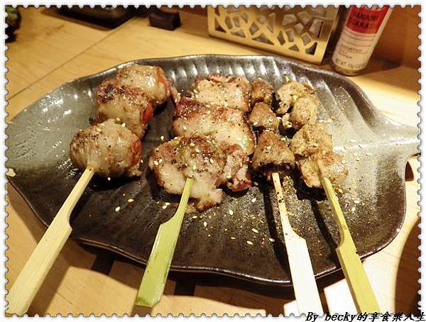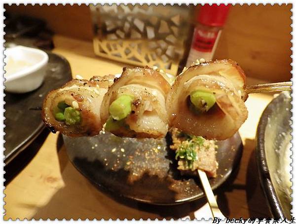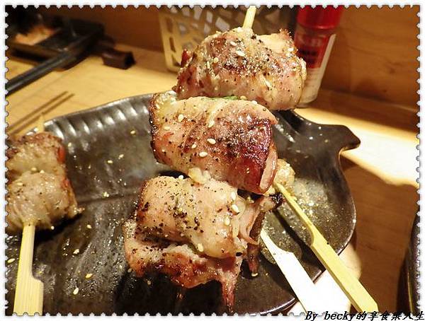 培根干貝串則是微鹹感,培根焦脆度烤的恰好,裡頭干貝肉質Q彈,灑上七味粉及白芝麻味道更是香濃,這個也很有味道。