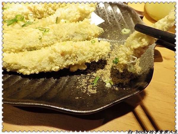 培根蘆筍串吃起來微鹹,上頭灑有七味粉及白芝麻提味,培根烤的焦脆,與蘆筍搭配多吃幾串也是沒有問題的,與沙瓦也是絕搭。