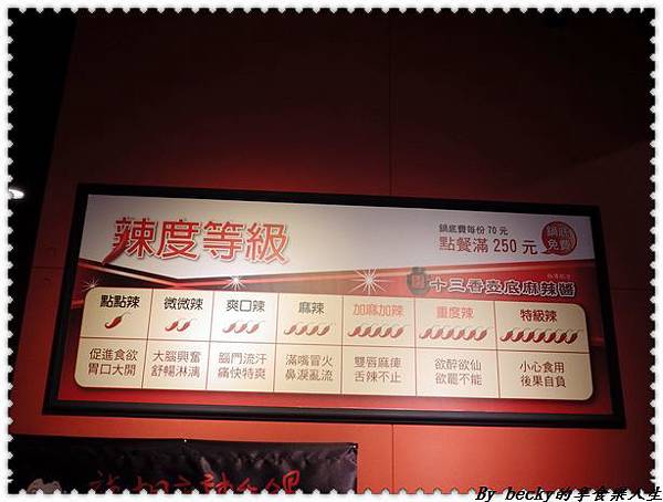 再來就是要選擇辣度話說我怕太辣,但又想吃點辣口感,與朋友討論選擇了最基本的點點辣,如果帶小朋友來的話,也是有香鍋喔!完全沒有辣度,很適合攜家帶眷來享用。