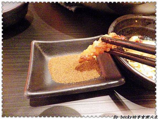 在吃同時,店員有來詢是否有合口味及辣度,而他說:如果還不夠辣,店內也會提供辣粉讓客人沾食,當然我們也要來一小盤來試試。