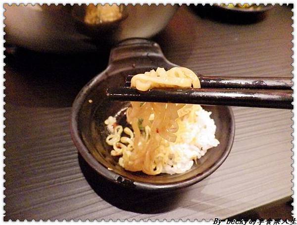 而科學麵則是吸附了醬汁,在嘴中咀嚼有著Q彈口感,微香微麻的滋味在嘴中流連不已。