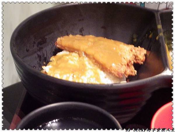 最後把咖哩淋到飯及豬排上,讓醬汁佈滿飯裡,讓朋友一口接著一口吃,她直說:味道很好。