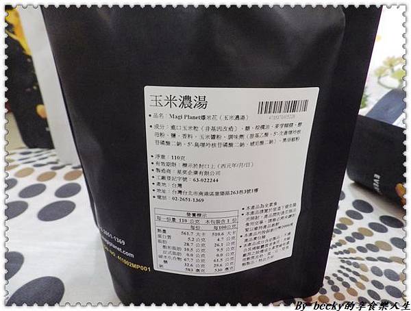 首先先來看玉米濃湯口味~包裝是黑色系,看起來很搶眼,背後的標籤上有著品名、成份及營養標示。