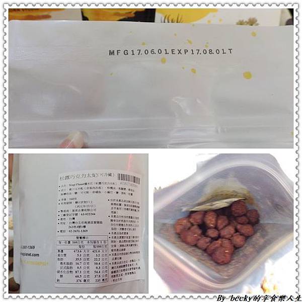 最後的松露巧克力太妃~則是白色包裝,背後一樣有著標示,夾鏈袋包裝打開後可以看到一顆顆黑色巧克力爆米花。
