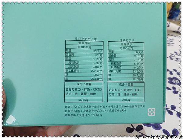 盒子背後有著品名、成份及營養標示,因為不添加任何防腐劑,是純手工製作,所以保存期限很短喔!冷凍14天、冷藏可放5天。