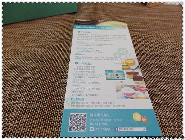 打開盒子後,可以看到一張小卡DM,正面是塔的製作圖案,背後則是有著各種甜品的價位。