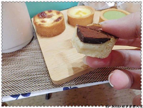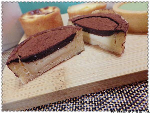 切一小塊入口,有著微微苦味及奶香味,微鬆軟的塔餅,與75%生巧克力跟冰涼嫰Q的布丁組合在嘴中,有著大人甜蜜感,老媽也稱讚,因為完全不會甜膩,整個搭配組合很棒。