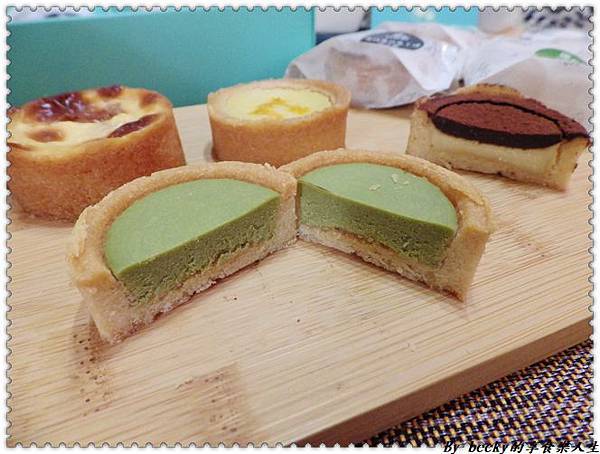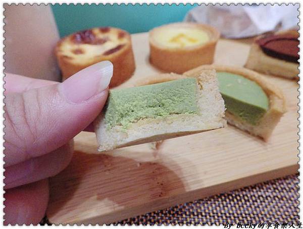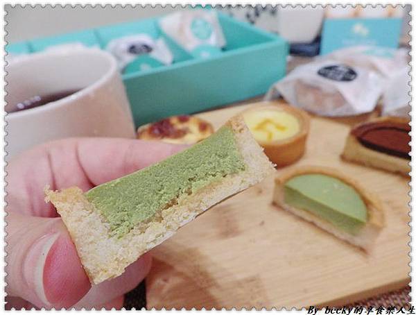 咬了一口,完全沒有抹茶的苦味,與搭配酥脆塔皮在嘴中有著綿密口感,微微甜香的抹茶巧克力非常深得我心。