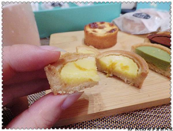 可以看的到非常軟的內餡,這是用100%新鮮甜橙去製作,在嘴中咀嚼有著濃郁的橙汁甜味,與鬆脆的塔皮一起,有著微甜香綿綿口感,這個非常有夏日甜點感。