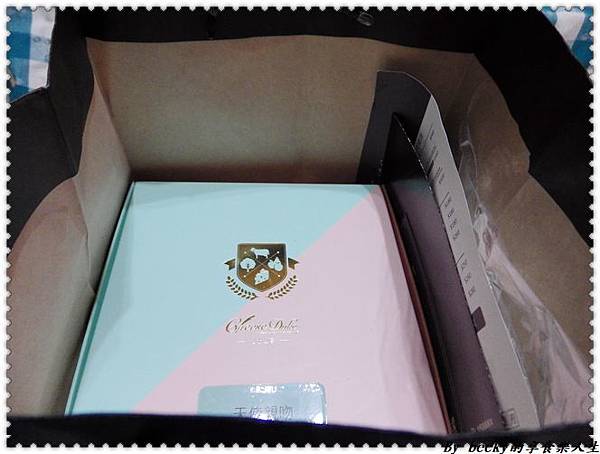 打開後,可以看到一個6吋天使親吻輕乳酪蛋糕蛋糕上的LOGO是起士公爵的標誌。