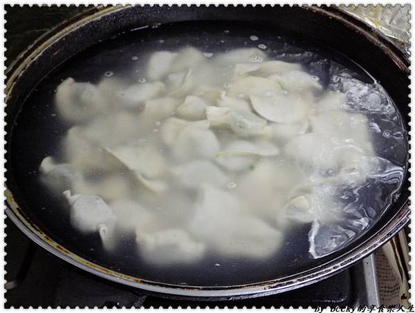 因為是混合三種口味下去水煮,所以要吃時會很有樂趣;剛上桌的水餃有著QQ的外皮,整個很吸引人的目光。