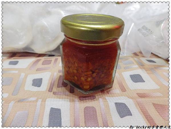 把水餃來拿沾辣椒醬~有著微香微辣感,與有肉汁一起入口,非常好吃喔!