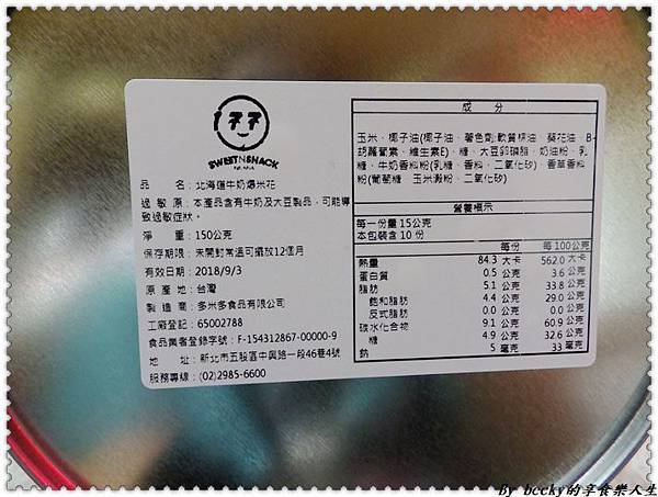 而罐底則有爆米花的詳細資訊—品名、成份及營養標示,而保存期限還蠻長的喔!