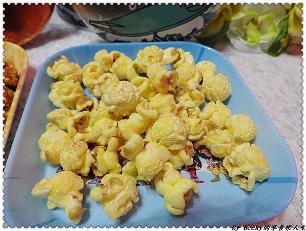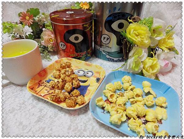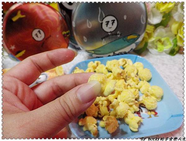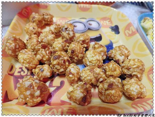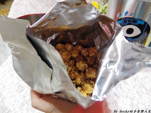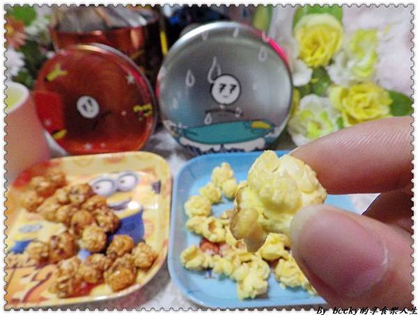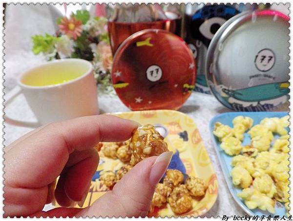 這次二種口味爆米花是不同造型的喔~北海道牛奶是蘑菇型,而堅果焦糖則是裹糖型的。