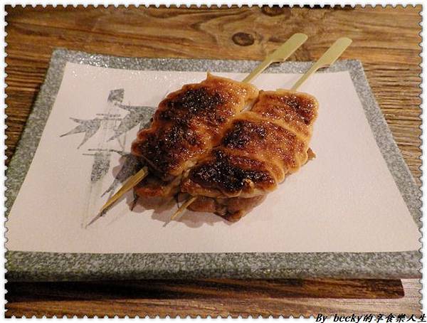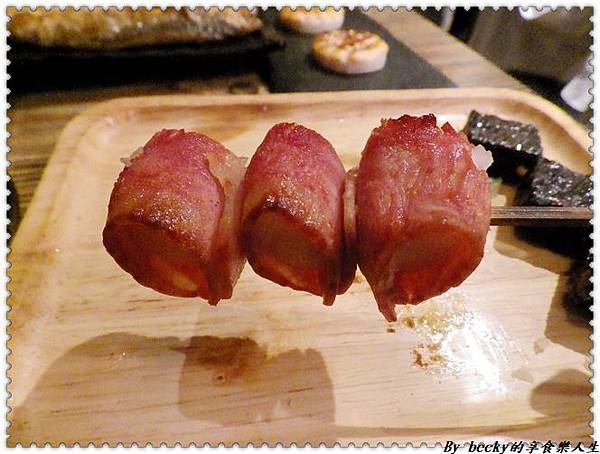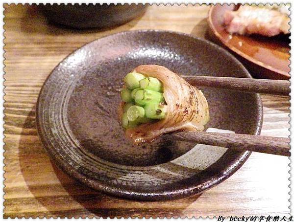 再來就是串燒上桌了從左至右是蘆筍豬肉卷、蒜香豬五花卷及鹽蔥松阪豬串。