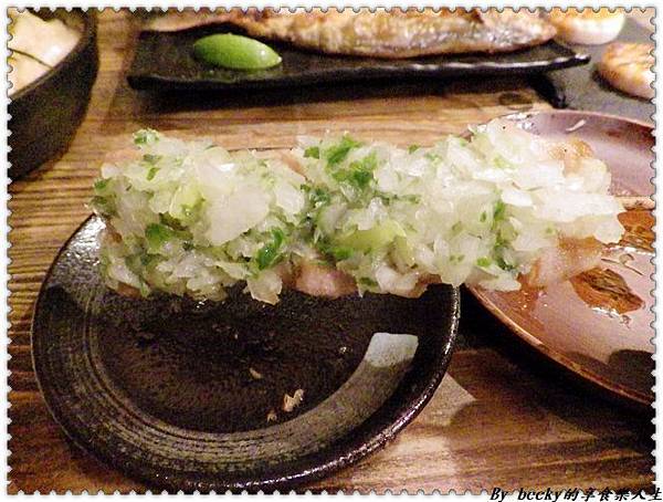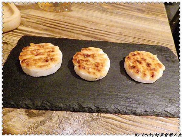 山藥上頭鋪滿一層明太子,且還有炙燒過,咬一口咀嚼,有著明太子的鹹香味及山藥的脆黏性,整個就是鹹甜混合,這道也很不錯吃。