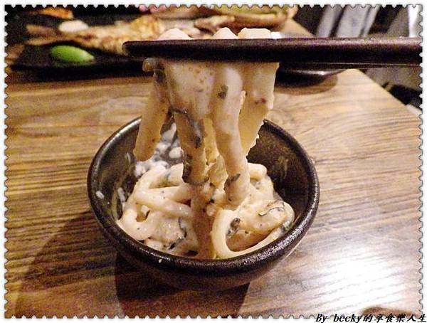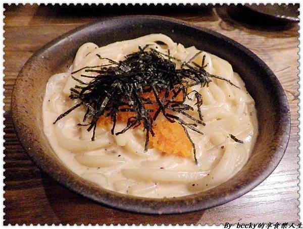 話說吃了很多明太子呢!這道烏龍麵上頭有著明太子及海苔絲,攪拌後入口,裡頭有加洋蔥,醬汁很像是奶油白醬,味道很厚重及濃稠,讓人一口接著一口吃著,吃一小碗就很有飽足感。