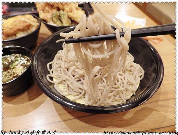 蕎麥麵是由日本進口蕎麥粉製作而成,單吃有著淡淡蕎麥香,麵條蠻Q彈的。