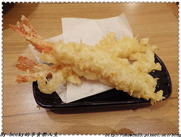 這個炸蝦炸的外皮酥脆,裡頭的蝦肉還保有彈性,店家也使用日本進口炸物機,可減少50%炸物的含油量,所以吃起來不會油膩。