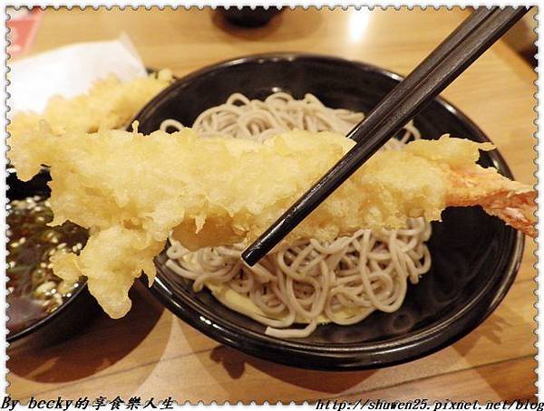 附加的炸蝦,可以放到蕎麥麵中搭配著吃,也可以獨立吃著