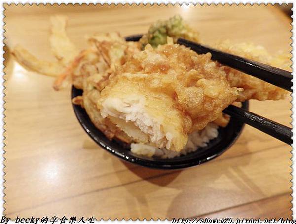 特別的是裡頭有魚肉,吃起來鮮嫰爽口,還帶有肉汁,因為天婦羅醬已淋在上頭,所以吃起來特別有味道。
