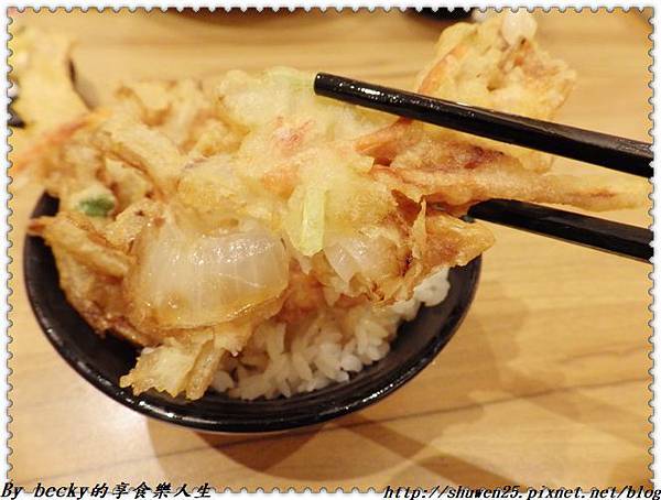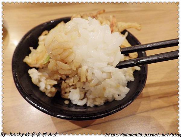 沾著天婦羅醬的飯,吃起來有著鹹香味,粒粒分明,真的讓人把飯吃光光。