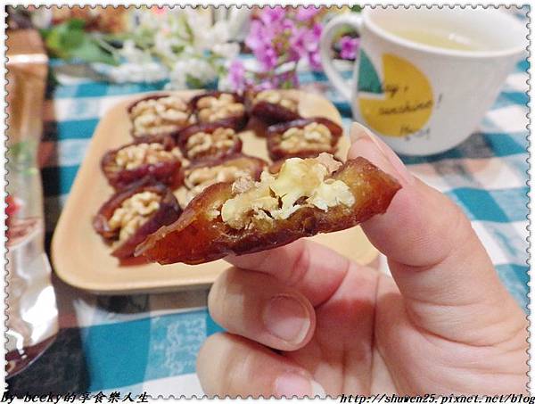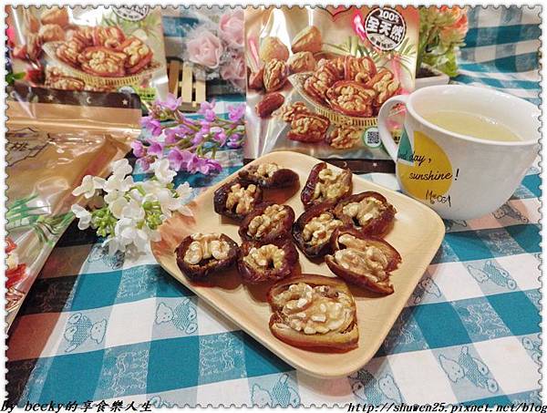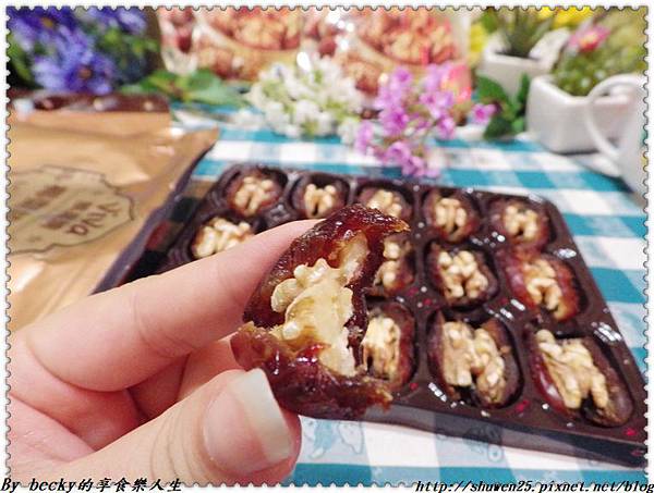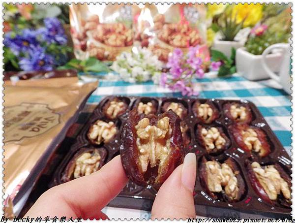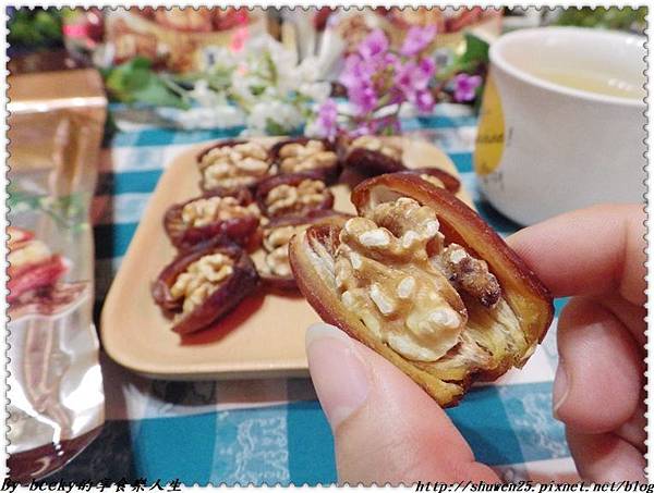 拿一顆飽滿微軟的椰棗夾著核桃,咬一口咀嚼,有著椰棗果實自然甜度及核桃的香脆,微甜帶著脆香的口感,很容易吃上癮椰棗是萬歲牌精選中東天然椰棗,其果實有著天然的糖份,採收後,經過乾燥、去籽等過程,再夾入烘烤過的核桃,過程100%全天然無調味,而烘烤過的核桃,保留其原始果香和營養素,Omega -3脂肪酸 ALA,可以調整體質!