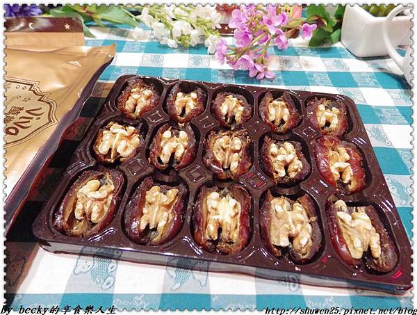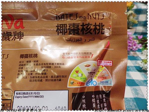 外包裝上有著椰棗核桃的圖案,這個是全素喔!食素的朋友也可以品嚐。