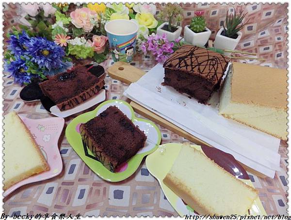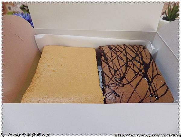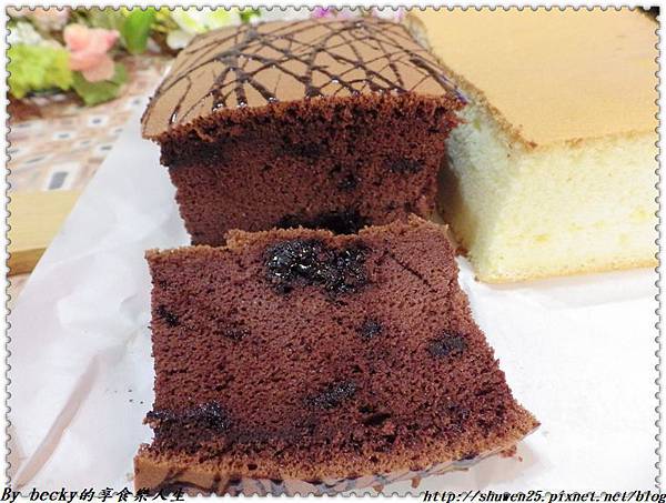 這個原味及巧克力-可可木古早味蛋糕,光光看著就很誘人,在搗蛋鬼烘焙坊可以購買半條,不用買到一條,且還可以搭配口味,隨時都可以變化搭配口味。