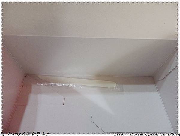 拿起蛋糕,就可以看到刀子在盒子裡頭