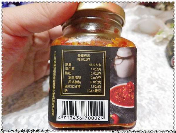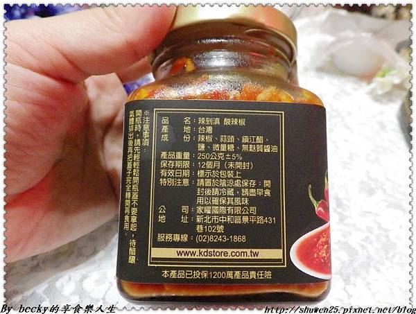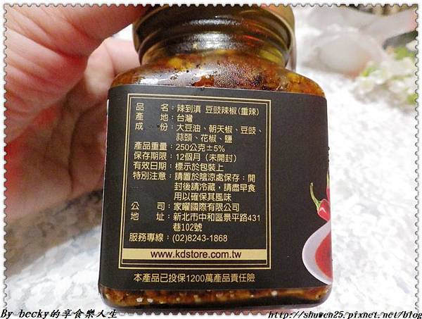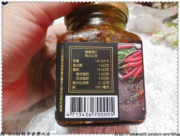 豆鼓辣椒(重辣)瓶蓋上有著有效日期,側邊則是品名、成份及產地說明,另一側則是營養標示,整個很清楚。