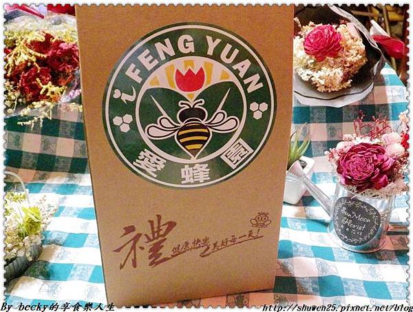 這個手提禮盒貼上愛蜂園的貼紙,非常簡約大方。