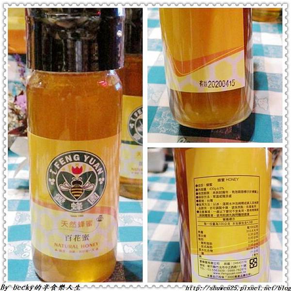 透明的瓶身裡頭可以看到百花蜜,有效日期在瓶身一角,也貼有品名、成份及有效日期。