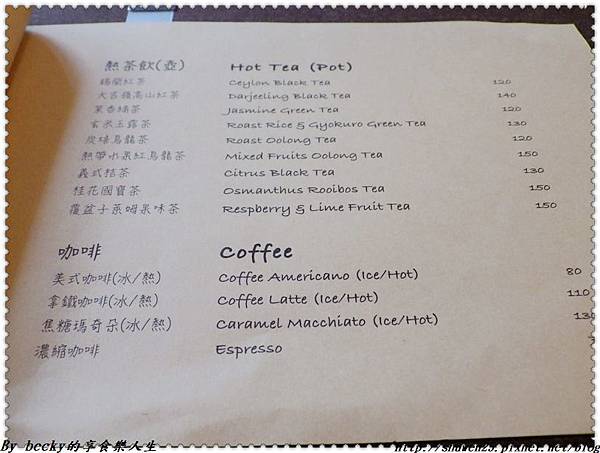 飲料部份除了咖啡外,還有其他茶品及果汁等等