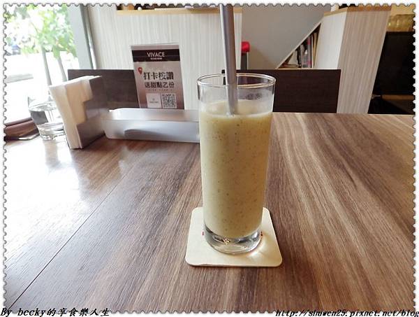 有濃厚的奇異果香,喝一口有水果顆粒,有聞到養樂多的香味,不過喝時卻沒有,微酸甜冰涼口感,很不錯喔!