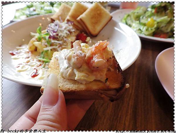 因附有麵包塊,先塗上奶油後再去烤,單吃有濃郁的奶油甜香味,沾上Sauce後,吃起來很帶味,這樣子吃非常棒喔!