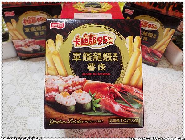 先來看軍艦龍蝦風味薯條外盒包裝有隻大龍蝦且還做成龍蝦軍艦壽司。